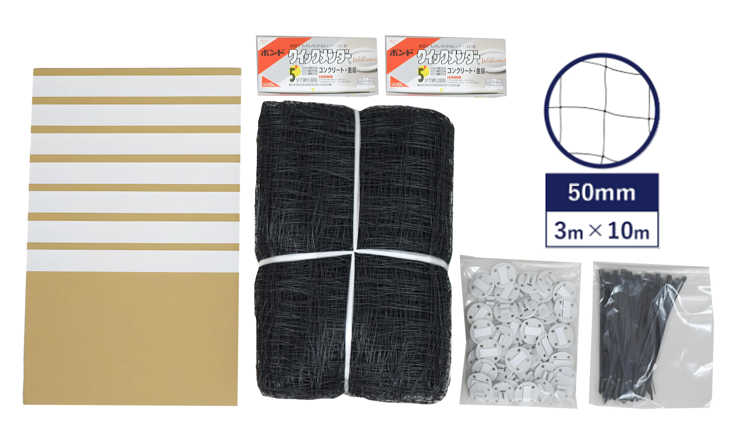両面テープだけでもフックを取り付けることはできます。しかし、鳩は非常に執着心の強い鳥のため、防鳥ネットを設置した後にもベランダ内侵入しようと試みます。その際に鳩がネットを引っ張るため、フックが外れてしまう可能性がありますので、ボンドとの併用をお勧めいたします。